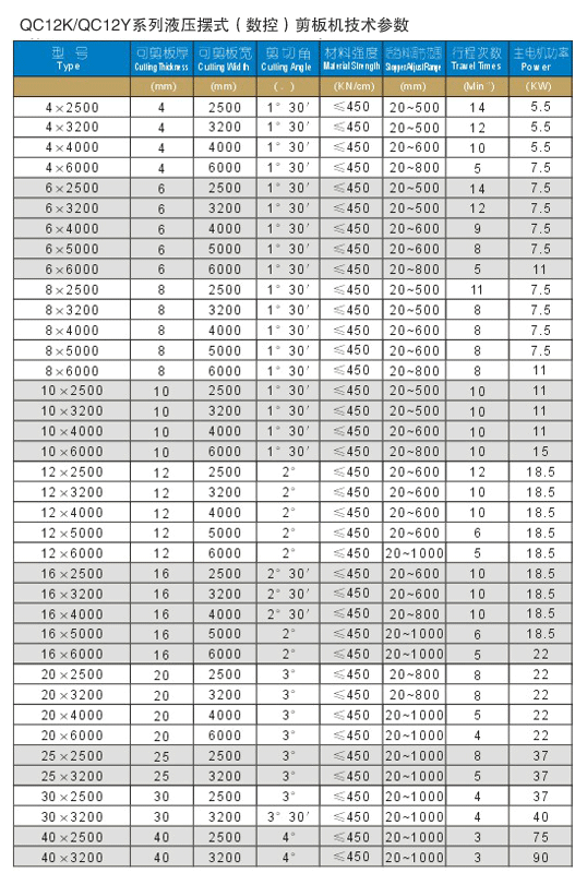 QC12K摆式剪板机主要参数与性能特点